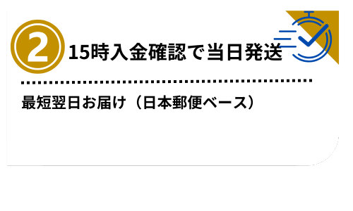 午後15時までにご注文及びご入金の場合、当日発送となります。